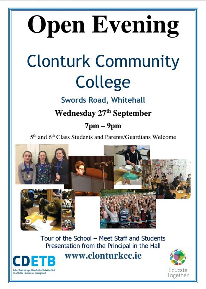 We will hold our Open Evening on Wednesday 27th September 2017 here in Clonturk Community College from 7pm until 9pm.