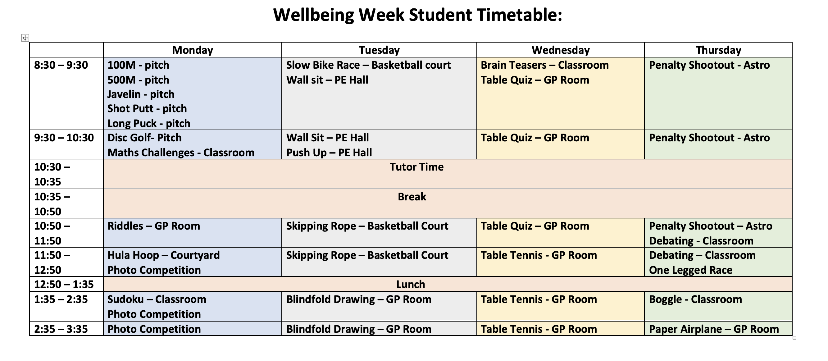 This week is Wellbeing Week. Please see the timetable of events that students have chosen to take part in to compete for the Clann Cup!! Best of luck to all tutor groups! 🙂